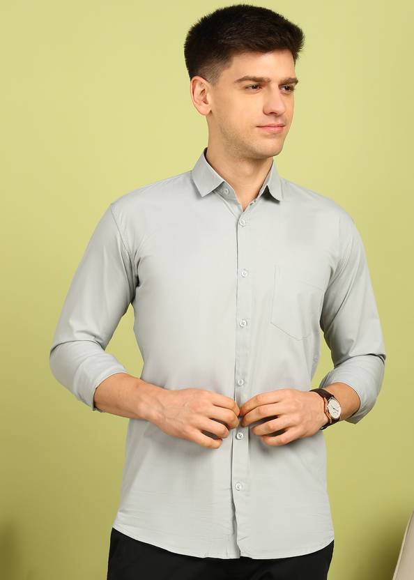 FUBAR Men Solid Formal Grey Shirt