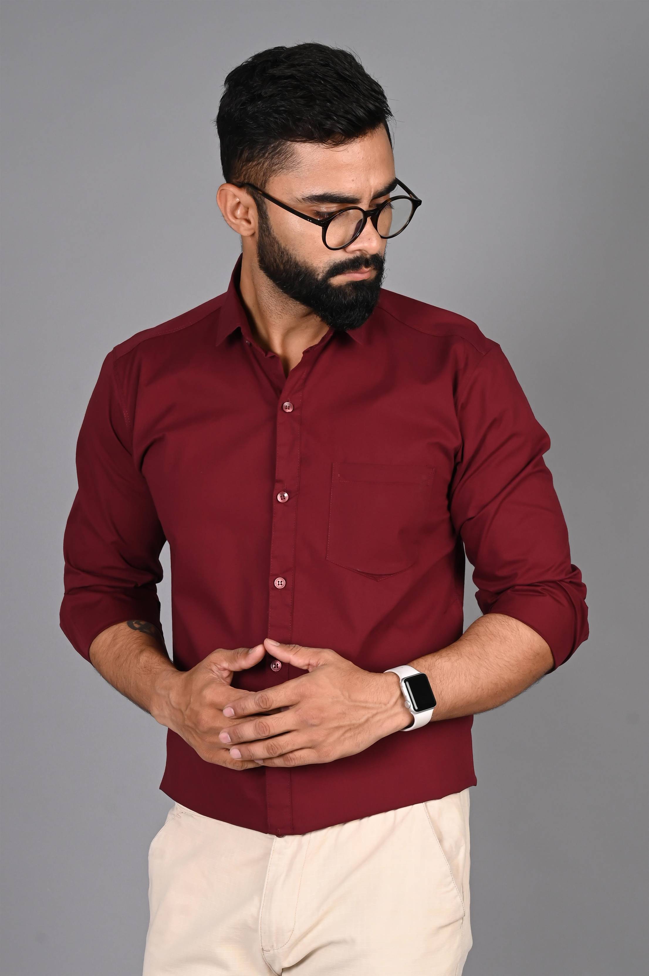 FUBAR Men Solid Formal Maroon Shirt