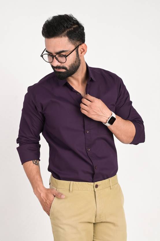 FUBAR Men Solid Formal Purple Shirt
