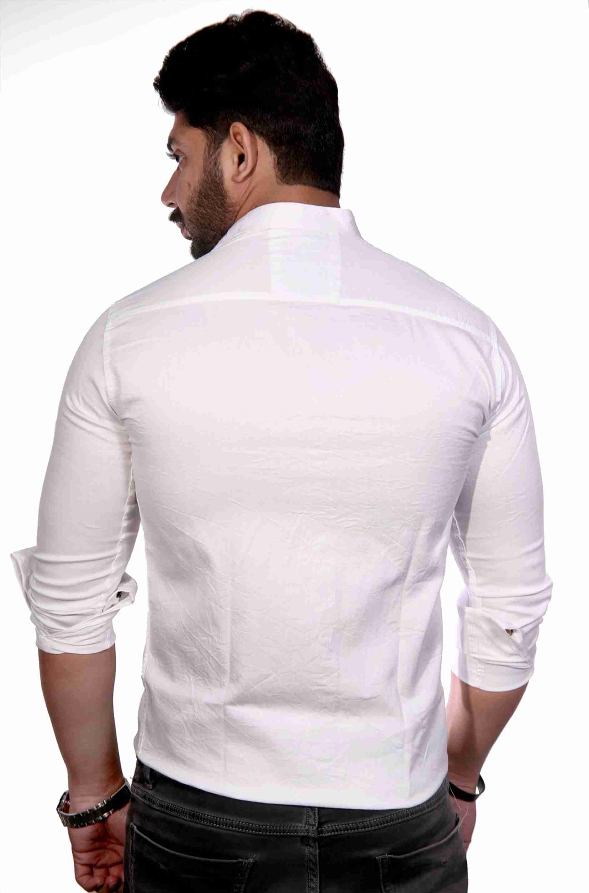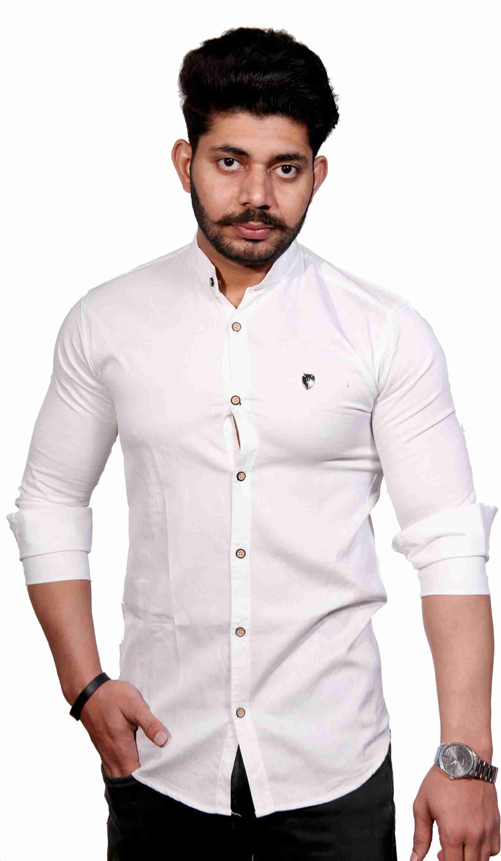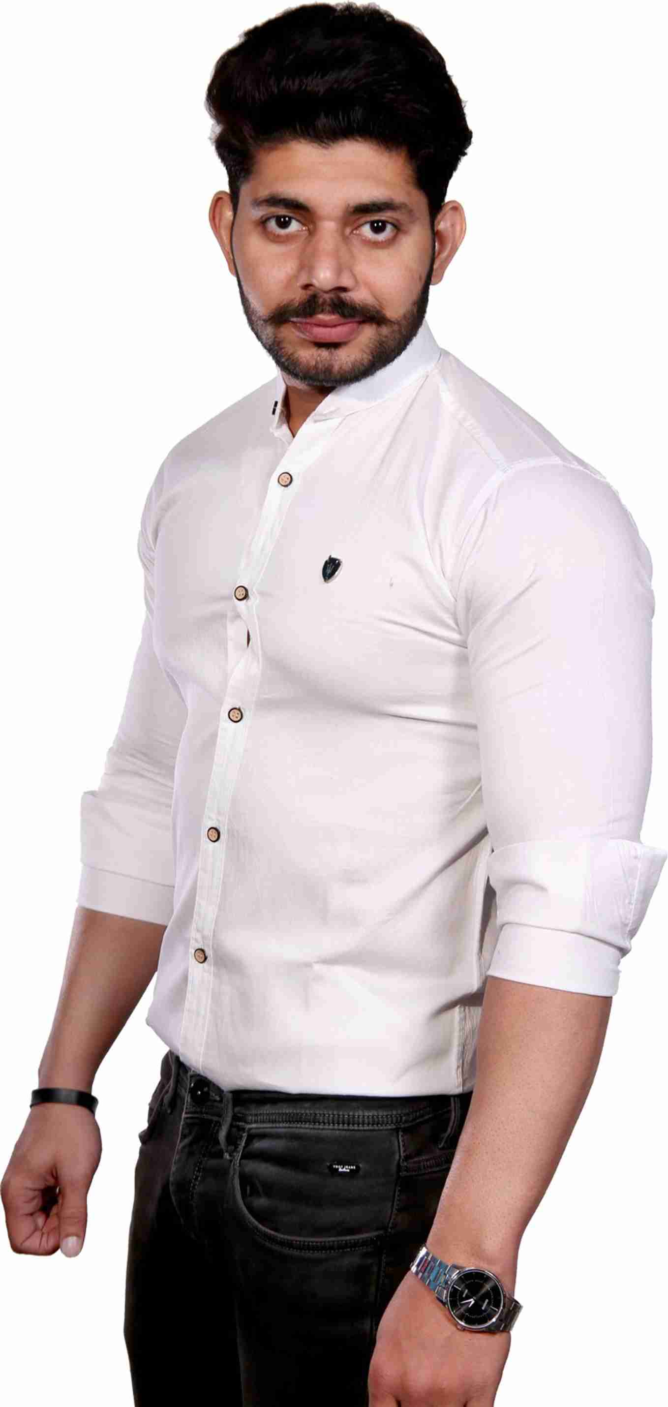 Men Slim Fit Solid Mandarin Collar Formal Shirt