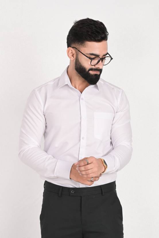 FUBAR Men Solid Formal White Shirt