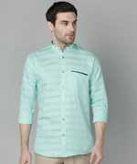 FUBAR Men Striped, Solid Casual Blue Shirt