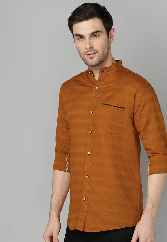 FUBAR Men Striped, Solid Casual Orange Shirt