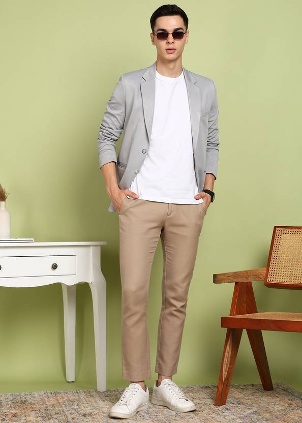 FUBAR Solid Single Breasted Formal Men Blazer (Grey)