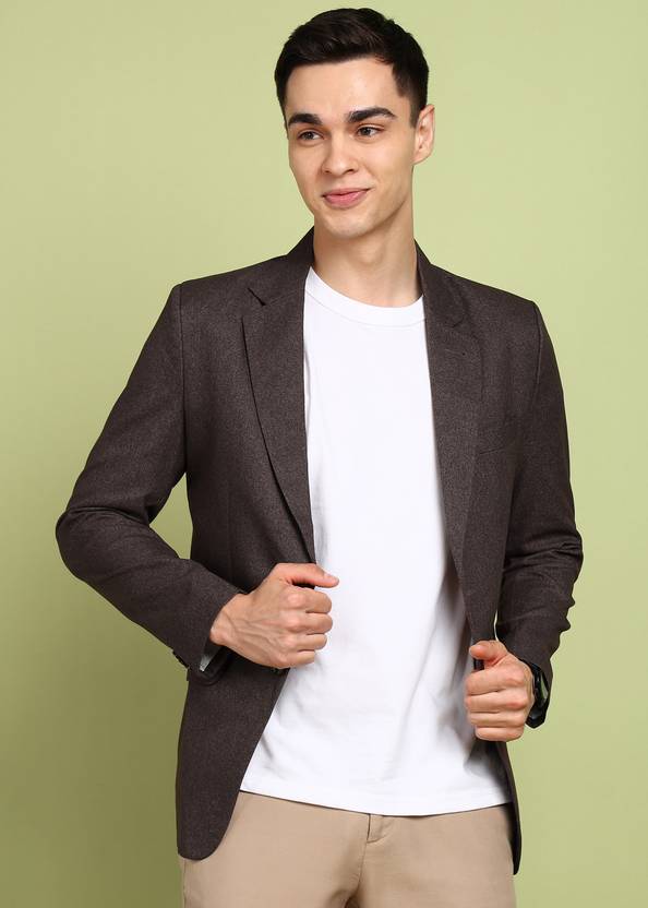 FUBAR Solid Single Breasted Party Men Blazer (Brown)
