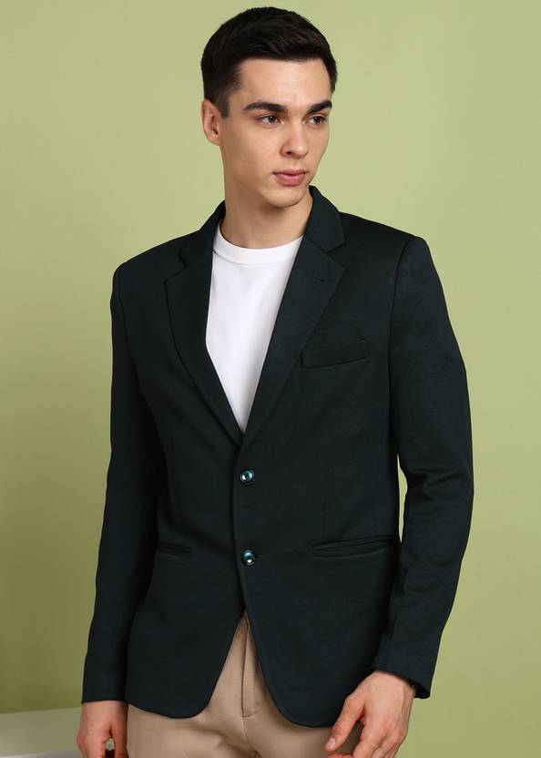 FUBAR Solid Single Breasted Party Men Blazer (Dark Green)