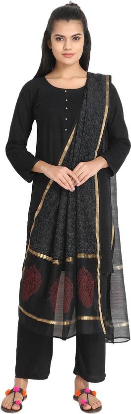 Fuchsia Designs Cotton Silk Floral Print Black Women Dupatta