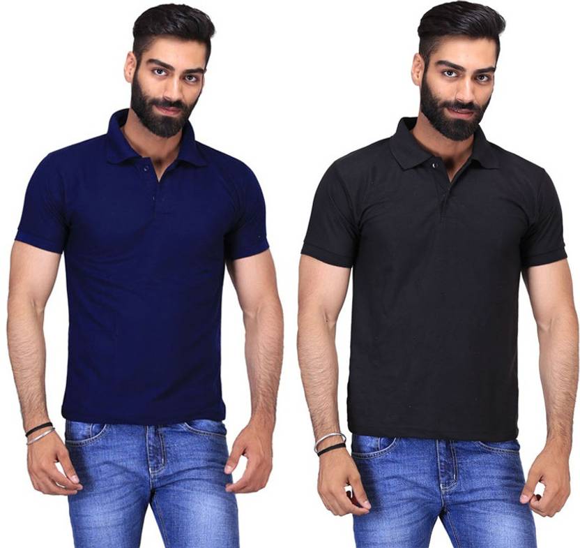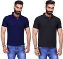 FUEGO Pack of 2 Men Solid Polo Neck Cotton Blend Dark Blue, Black T-Shirt