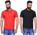 FUEGO Pack of 2 Men Solid Polo Neck Cotton Blend Red, Black T-Shirt