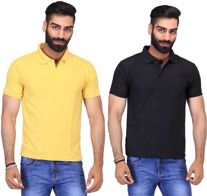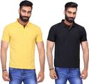 FUEGO Pack of 2 Men Solid Polo Neck Cotton Blend Black, Yellow T-Shirt