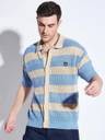FUGAZEE Men Striped Casual Blue, Beige Shirt