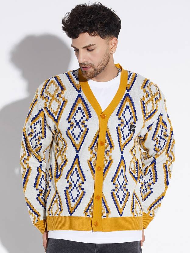 FUGAZEE Printed V Neck Casual Men Multicolor Sweater