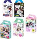 Fujifilm Instax Mini 5 Pack Bundle Includes Stained Glass, Comic, Stripe, Shiny Star, Airmail. 10 sheets X 5 Pack = 50 Sheets. Bonus Wiki Deal Micro Fiber Cloth