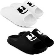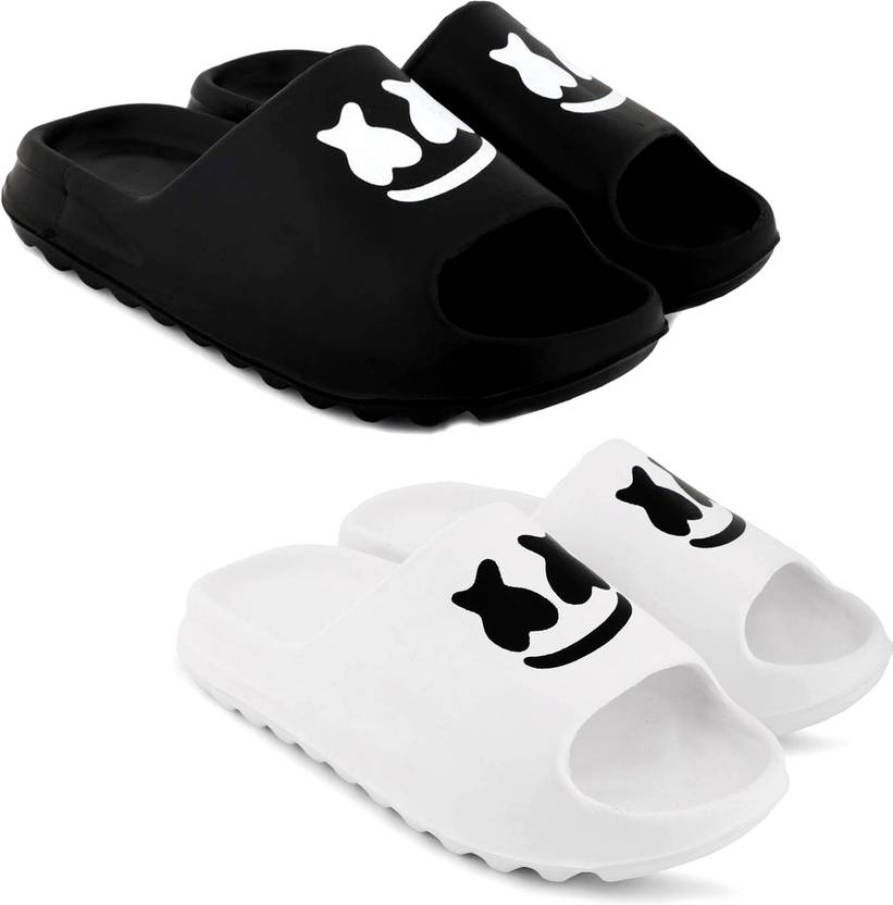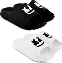 Fuliva Men Slides (Black, White , 10)