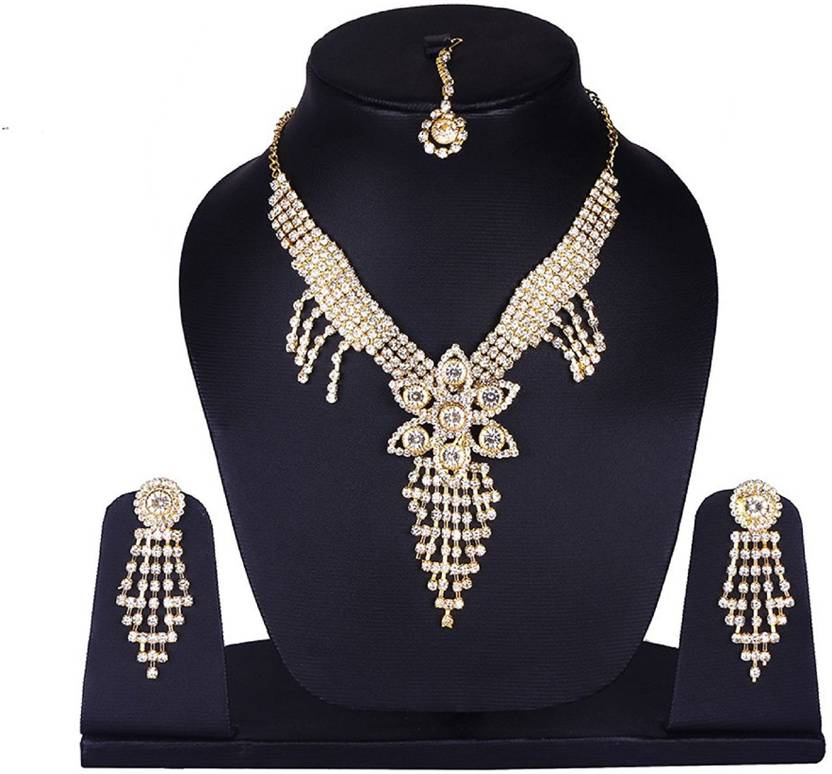 FULLY American Diamond Necklace Set Gold-plated Plated Crystal, Alloy Necklace Set