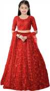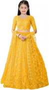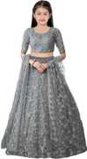 FULPARI Girls Lehenga Choli Party Wear Embroidered Lehenga, Choli and Dupatta Set (Beige, Pack of 1)