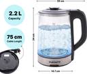 The FUMATO Glass Kettle Electric is a must-have appliance for any kitchen, hostel, or office. This glass kettle is perfect for families, kids, and mothers who need hot water quickly and easily. This kettle for hot water boasts a powerful 1500W heating element that ensures fast boiling for tea maker machine, instant noodles, oatmeal, or hot beverages. With its generous 2.2L capacity, you can boil water for the whole family or your office colleagues at once. Crafted from durable, heat-resistant Borosilicate glass and stainless steel, this glass kettle 2.2 litre is designed for long-lasting performance. The transparent design lets you monitor the boiling process while the kettle for cooking features an auto shut off and boil dry protection for added safety. Cleaning is a breeze with its wide mouth and smooth surfaces, making this tea kettle a true kitchen essential. The FUMATO Electric Kettle prioritizes quality and user satisfaction, guaranteeing a reliable and efficient experience with every use. Enjoy quick heating, a convenient water heater kettle, and peace of mind with the FUMATO Electric Kettle, your perfect companion for a hassle-free hot beverage experience.