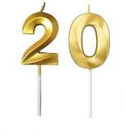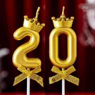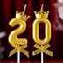 Fun Affairs Number 20 Crown Candle for 20th Birthday/Anniversary Party Cake Topper Candle (Gold, White, Pack of 2)