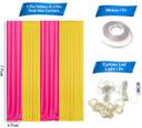 Fun and Flex Pink and Yellow Net Backdrop with Led Light for Haldi/Wedding Wall Decorations (Set of 6)