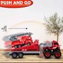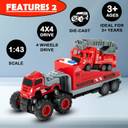 FUNABLO 1:43 Die cast 4WD Push and Go Fire Truck, Friction Powered Vehicle Truck (Red)