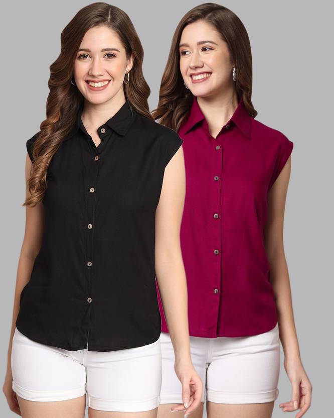 FUNDAY FASHION Women Solid Casual Black, Purple Shirt (Pack of 2)