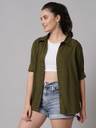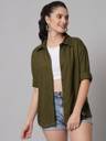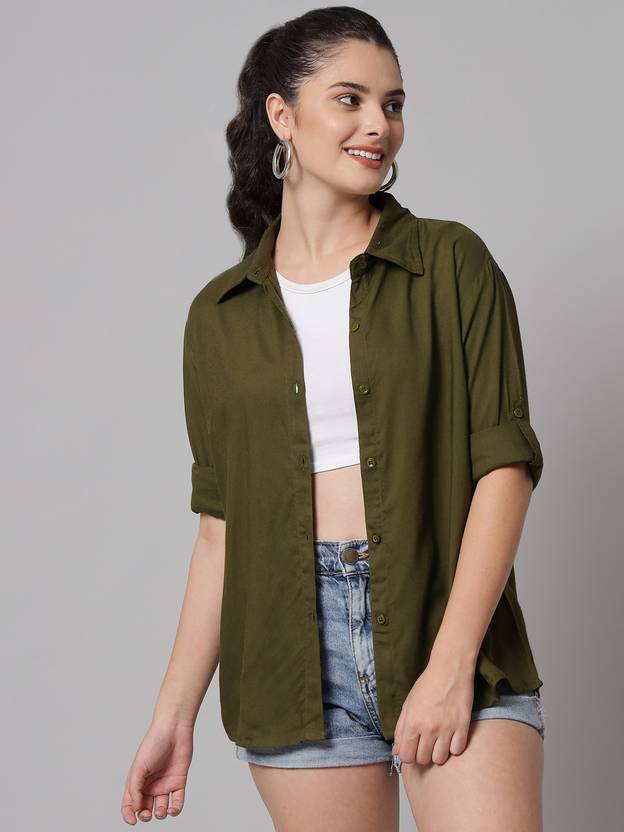 FUNDAY FASHION Women Solid Casual Green Shirt