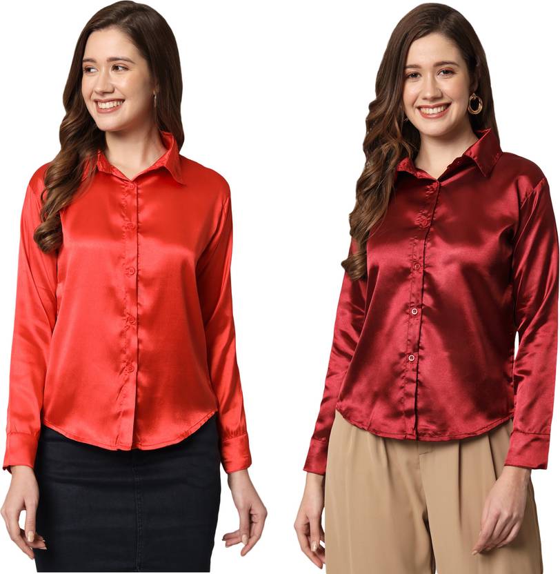 FUNDAY FASHION Women Solid Casual Red, Maroon Shirt (Pack of 2)