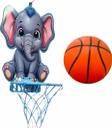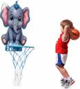 DESIGN FEATURES: Adorable elephant-themed basketball hoop with blue backboard, perfect for children's rooms or playrooms, COMPLETE SET: Includes a basketball net, backboard with cute elephant design, and regulation-style orange basketball, Wall-Mounted Setup: Easily mountable on walls or doors, this basketball hoop saves floor space and can be installed at an appropriate height for your child., DEVELOPMENTAL BENEFITS: Helps children develop hand-eye coordination, motor skills, and basic basketball techniques through playful practice