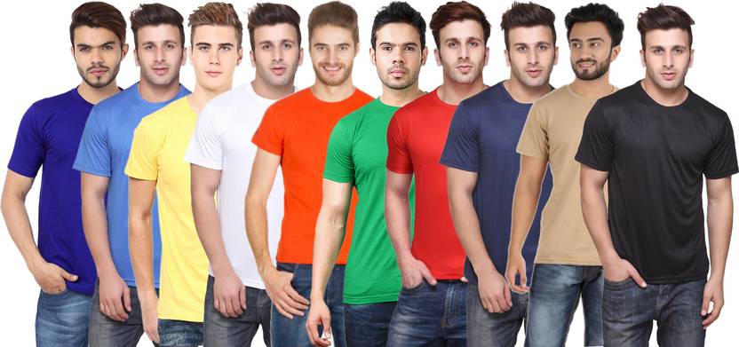 FUNKY GUYS Solid Men Round Neck Multicolor T-Shirt