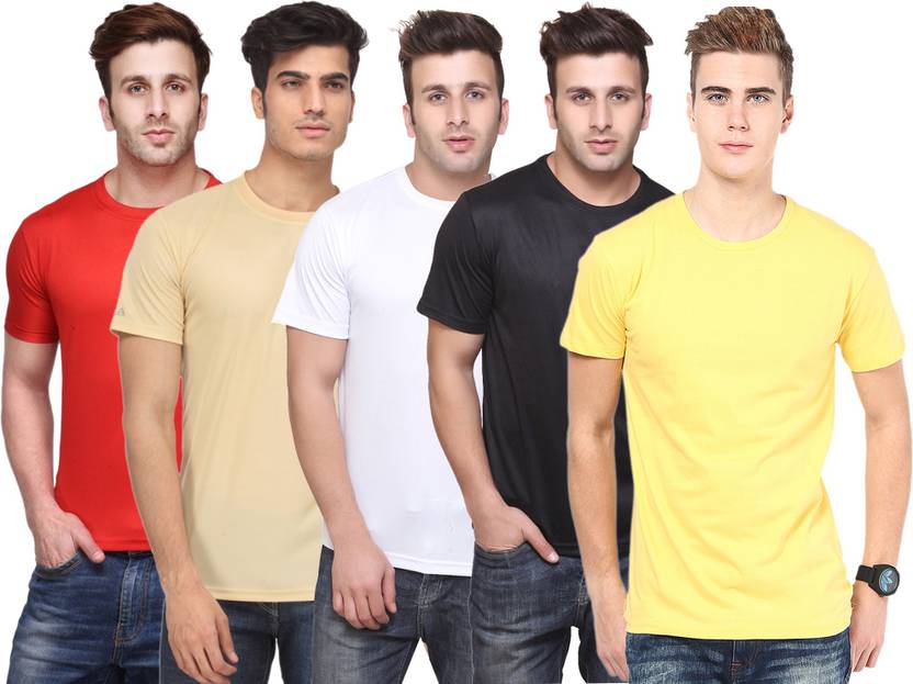 FUNKY GUYS Solid Men Round Neck Multicolor T-Shirt