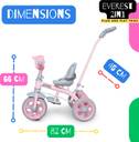 RECOMMENDED AGES & DIMENSIONS This Musical Tricyle With Parental Handle for kids is for 1-5 years old kids. Meet different needs during your kids' growth. To Ride On the Learning Tricycle could develop muscle strength as well as balance, coordination and confidence.Dimension of the Musical Trike - Length - 89cm , Breadth - 45cm , Height - 66cm
