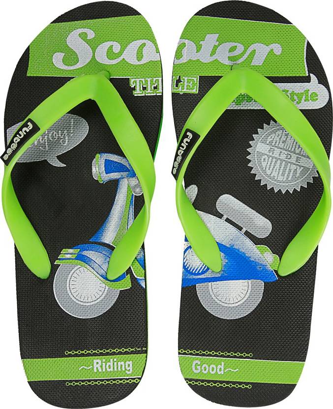 Funtoes Scooter Men Slippers (Green, Black , 9 UK/India)