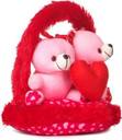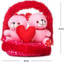 funtoosh Couple Love Teddy Bears in Basket - 30.5 cm - 32 cm (Red)