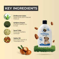 Boasting a blend of enriching ingredients, this shampoo caters to your dog's skin and coat needs. Ghritkumari juice is key to replenishing the skin’s moisture. The inclusion of sahijana extract promotes a shiny, healthy fur and coat. Saunf oil works wonders in preventing hair fall and dandruff. Additionally, jojoba oil promotes the growth and thickness of the fur.