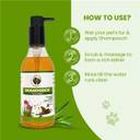 Designed to provide enhanced relief, this dog shampoo effectively alleviates itching and discomfort. Featuring ingredients like ghritkumari juice, it reduces pet odours and soothes itchy, inflamed skin with geranium. The addition of tea tree oil repairs damaged skin, kills yeast, and combats scabies, while citronella oil nourishes dry and tick-infested scalps. Neem leaf, known for its antifungal and antibacterial properties, further soothes itchy skin and promotes overall skin health.