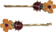 Matt Golden Finish Bobby Pin with a Beautiful Orange Enamelled Flower and a Red Bug to enhance your Summer Look and hold your hair too.