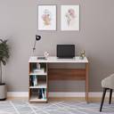 FURNEASER Carren Computer Table, WFH Desk, Gaming Table with Storage Shelf, Shop Counter, Engineered Wood Study Table (Free Standing, Finish Color - Exotic Teak & White, DIY(Do-It-Yourself))