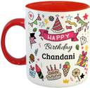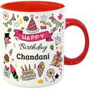 Furnish Fantasy Happy Birthday Ceramic Coffee - Best Birthday Gift for Son, Daughter, Brother, Sister, Gift for Kids, Return Gift - Color - Red, Name - Chandani Ceramic Coffee Mug (350 ml)