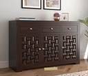 Furniture Mart Sideboard Cabinet with 3 Drawers and 3 Shelves for Living Room Furniture Solid Wood Free Standing Chest of Drawers (Finish Color - Brown, Door Type- Folding, Pre-assembled)