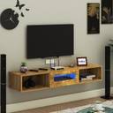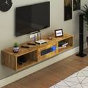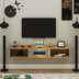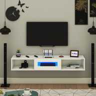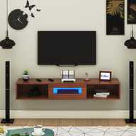 FURNIWUD Wall Mount Modern Floating TV Unit with Storage Cabinet & Blue LED Light Engineered Wood TV Entertainment Unit (Finish Color - Gaintwood, DIY(Do-It-Yourself))
