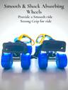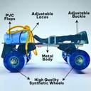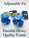 Fusion Sports Adjustable Roller Skates, Metal Frame with PVC Flaps, Blue Wheels, Yellow Laces, Quad Roller Skates - Size 8 UK (Blue)