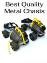 Fusion Sports Adjustable Roller Skates, Metal Frame with PVC Flaps, Blue Wheels, Yellow Laces, Quad Roller Skates - Size Free UK (Black, Silver)
