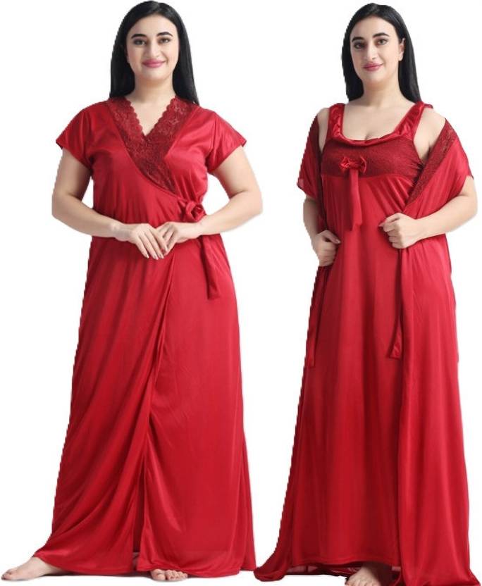 FusionVilla Women Solid Maroon Night Suit Set
