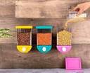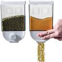 Wipe the installed wall clean. Peel off the strong, non-stick adhesive tape attached to the wall. Align the feet on the back of the storage tank with the squares that are attached to it. Style: Modern Material: Plastic Product Category: Fresh-keeping box Feature . The large-capacity rice bucket can hold about 1L/of rice. Rice storage container is made of plastic, moisture -proof and anti-mildew. Cereal container with lids, it has good sealing performance, push type design, easy to use. Rice dispenser has moisture and bacteria prevention design, keep the food fresh. Food container suitable for rice, cereal, corn, grain, flour, bean, peanuts.