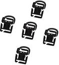 Fits into 2.5cm strap. Easy and convenient to use. Rotation (360 degrees 8-stage rotating base), easy to use. Locking D-Ring can replaces the metal carabiner for attachment of keys, tiny things, and accessories. Material: Plastic Size:5cm x 4.1cm/1.95'' x 1.6''(approx) Color:Black color Quantity: 5 pcs