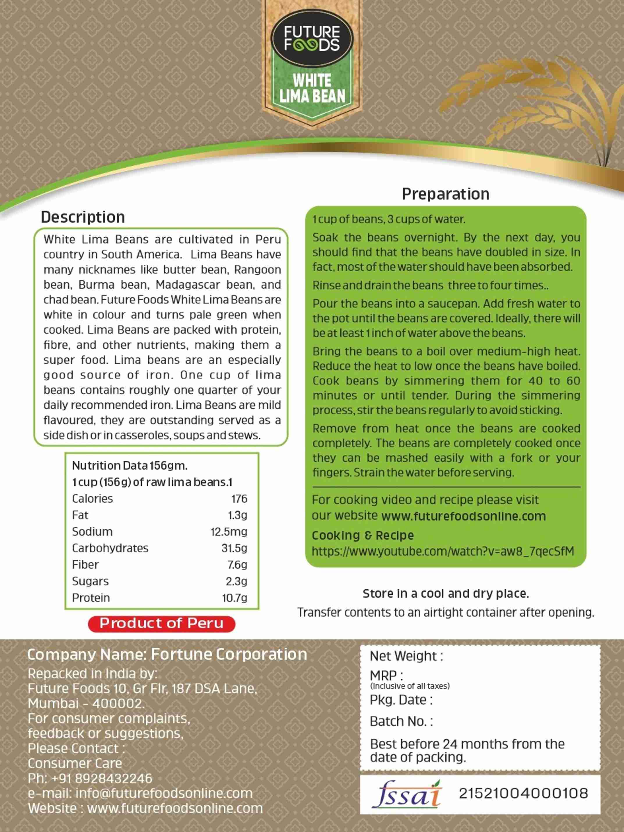 White Lima Beans (Whole) (500 g)