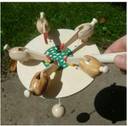 Very entertaining Wooden Paddle With Pecking Chickens made of wood. Manipulate Tethered Ball To Control Pecking. Features Five Pecking Chickens. Chickens peck as ball on underside swings. Vary swing to change pecking order. Enter the world of chickens and introduce them to your kid. Made of wood and non-toxic materials .