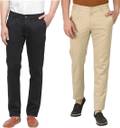 FX Jeans Co Pack of 2 Men Regular Fit Black, Beige Cotton Blend Trousers