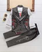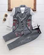 Upgrade your little champ’s wardrobe with this trendy 3-piece waistcoat set. The set includes a printed full sleeve t-shirt, a stylish waistcoat with button details, and matching pants. Designed for both comfort and fashion, this outfit is perfect for birthdays, parties, family functions, or festive occasions. The soft fabric ensures all-day ease, while the modern design adds a dapper touch to your boy’s look.