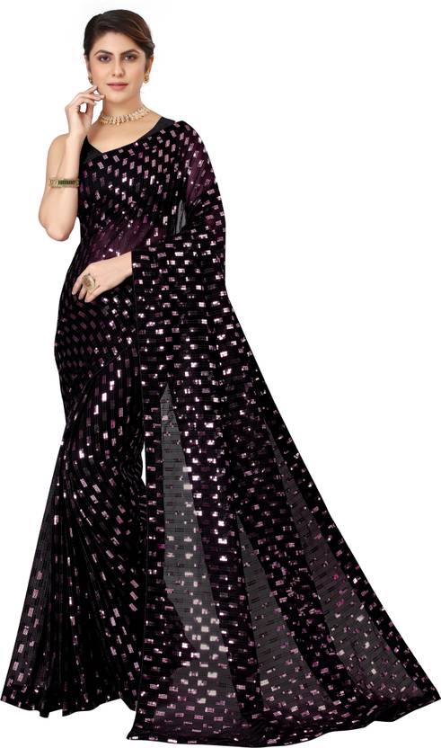 G JELLY FASHION TREE Embellished, Embroidered Bollywood Georgette Saree (Black, Pink)